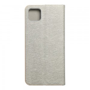 Elegáns tok fémes kerettel a telefon fokozott védelme érdekében. A vonzó textúra és a kellemes tapintású anyag stílusos tokot hoz létre, amely kiemeli a készülék modern kialakítását. A puha velúr anyag belül és a tartó részén védi a készüléket mindkét oldalról a sérülésektől és karcolásoktól. A fogantyú rugalmas szilikonból készült, és kivágásokkal rendelkezik. Az alumínium keret a széleken erősebbé teszi a tokot, és még jobban védi a készüléket. A fém és az eredeti anyag kombinációja egyedi és modern összeállítást hoz létre, amelynek köszönhetően a készülék stílusos és elegáns megjelenést nyújt. A tok kisméretű zsebet is tartalmaz a praktikus iratok vagy bankjegyek számára. A tok vízszintes állvánnyá alakítható filmek vagy fényképek nézéséhez. Erős mágnes biztosítja a könnyű záródást és nyitást, valamint megakadályozza a véletlen kinyílást.
