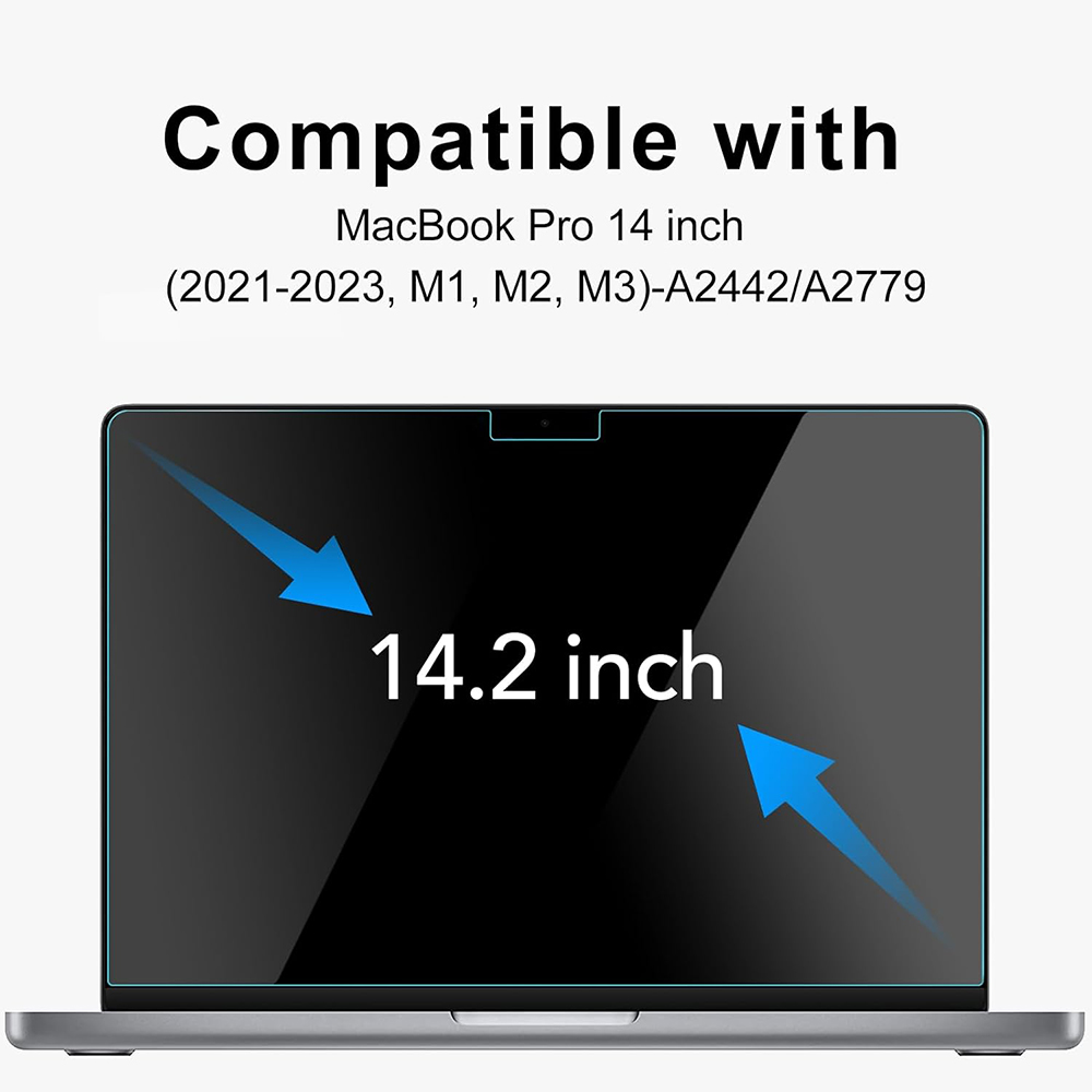 Ez a Techsuit VisionProX kijelzővédő fólia kizárólag a 14 hüvelykes (valós kijelzőméret: 14.2 hüvelyk) MacBook Pro modellekkel kompatibilis. Kérjük, vásárlás előtt győződjön meg arról, hogy készüléke az alábbi típusok közé tartozik:
