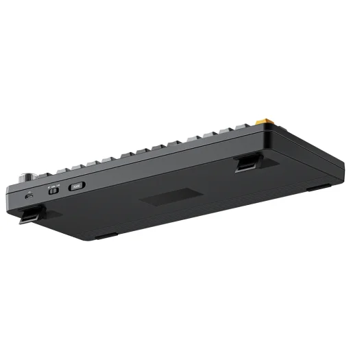 A billentyűzet jobb felső sarkában található multifunkcionális forgatógomb (potméter) kényelmes és gyors hozzáférést biztosít a hangerő, a multimédiás vezérlők és egyéb rendszerfunkciók irányításához. Ez a praktikus kiegészítő fokozza a felhasználói élményt, miközben minimalizálja az egérhasználatot. A billentyűzet alján elhelyezkedő állítható lábak két fokozatban emelik a billentyűzet dőlésszögét, ezzel támogatva az ergonomikusabb gépelési pozíciót. A dedikált szoftver segítségével tovább programozhatók a billentyűkiosztások, makrók és multimédiás beállítások, így teljesen az Ön igényeire szabható az eszköz.
