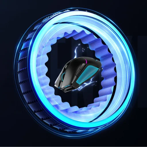 A szett része egy innovatív, mágneses RGB dokkolóállomás, amely nemcsak kényelmesen és vezeték nélkül tölti az egeret, de egyben esztétikus alapként is szolgál. A dokkoló és az egér is több zónás, dinamikus RGB világítással rendelkezik (3+1 zóna), amely tovább emeli a játékélmény vizuális szintjét, és tökéletesen illeszkedik a gamer setupodhoz. Az egér letisztult, fekete külseje és az alul futó, valamint a görgőn és logón megjelenő RGB sávok különleges hangulatot teremtenek. Az 380 mAh-s akkumulátor hosszú üzemidőt biztosít, a töltés pedig rendkívül egyszerű az USB-C kábel vagy a dokkoló segítségével, amely egy kényelmes USB tárolóhelyet is kínál a 2.4 GHz-es dongle számára.