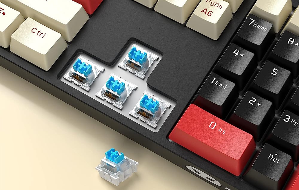 A billentyűzet kék kapcsolókat kínál, amelyek éles, kattogós érzetet és jellegzetes hangot biztosítanak. A jól meghatározott aktiválási pontnak köszönhetően kiemelkedő precizitást és azonnali reakcióidőt biztosítanak, így ideális választás azoknak a gamereknek, akik minden mozdulatukat teljesen irányítani szeretnék.