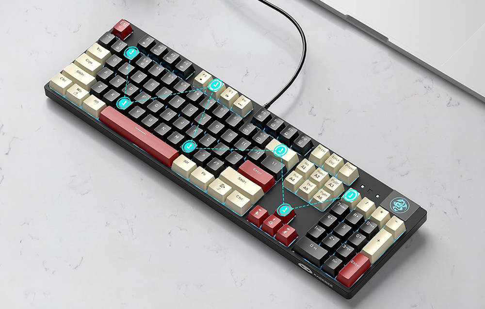 A MageGee MK-ARMOR billentyűzet 104 billentyűvel, beleértve a numerikus billentyűzetet is, sokoldalú, és egyaránt alkalmas játékra és munkára. Az előrehaladott anti-ghosting technológiának köszönhetően biztos lehetsz abban, hogy minden billentyűleütés helyesen rögzítésre kerül, még a legintenzívebb játékok során is.