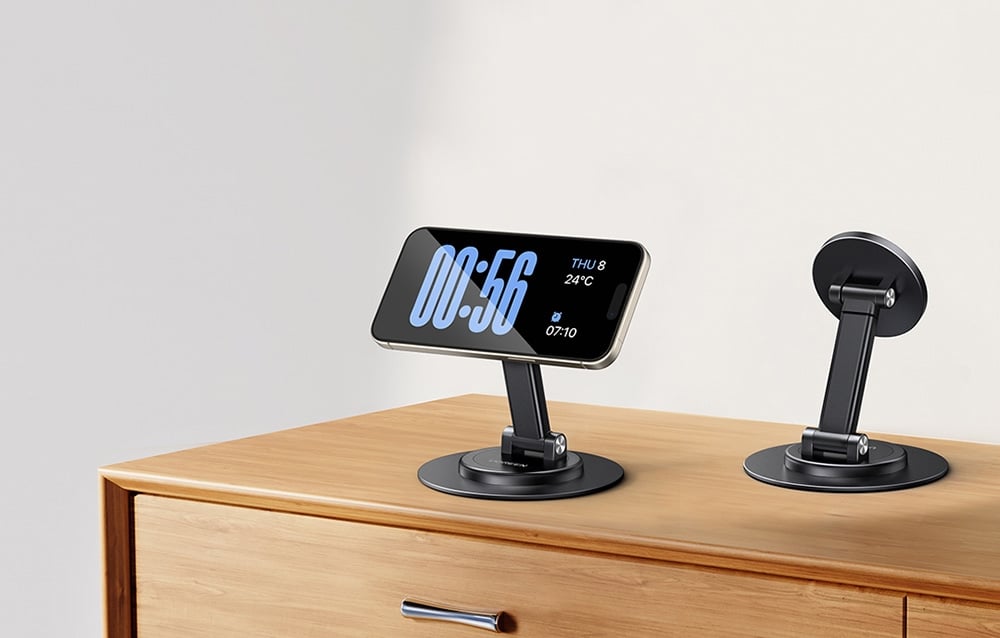 Az UGREEN LP862 mágneses állvány tökéletes megoldás azok számára, akik kényelmes és stabil támasztékot keresnek mobil eszközüknek. A 17 N52 mágnest használó állvány zökkenőmentes és szilárd rögzítést biztosít a MagSafe-kompatibilis készülékekhez, beleértve az iPhone 15, 14, 13, 12 és más kompatibilis tokokat. Ez egy megbízható tartozék, amely lehetővé teszi, hogy okostelefonját egyszerűen, kényelmes pozícióba helyezze.