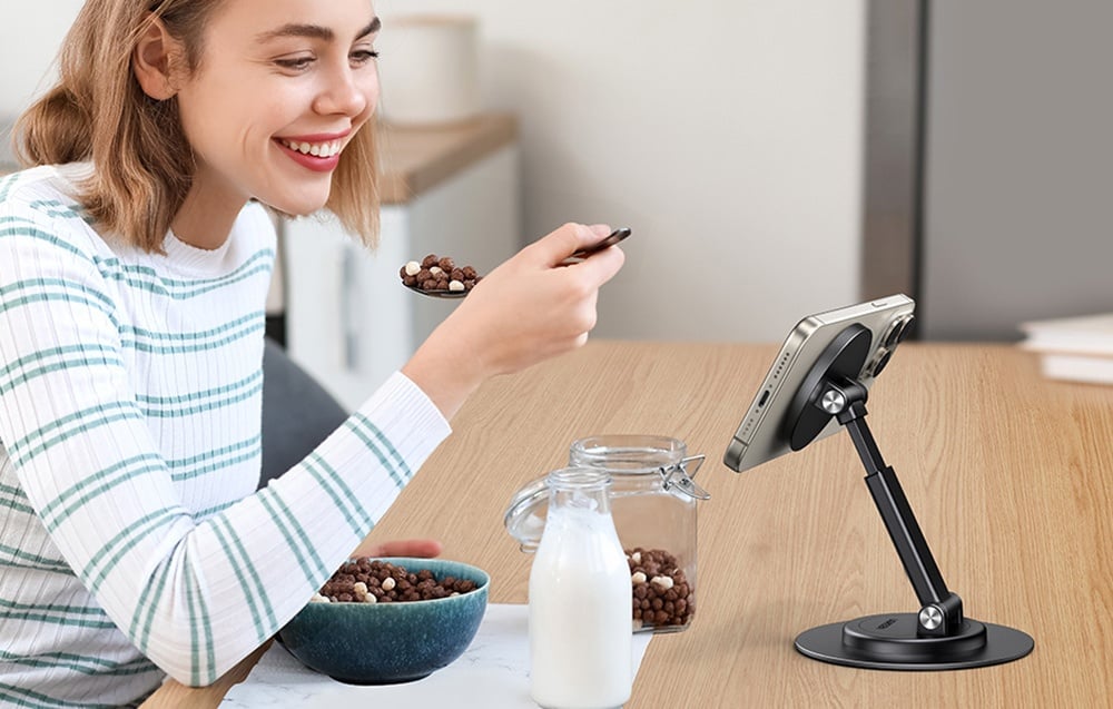 Teljesen állítható a maximális kényelem érdekében Az UGREEN LP862 12-15 cm-es állítható magassági tartományt kínál, így testre szabhatja készüléke elhelyezését. A 360°-os elforgatásnak és a készülék optimális látószögbe állításának köszönhetően bármilyen helyzetben élvezheti a kényelmes médiafogyasztást, videokonferenciát vagy munkát. Ez a tökéletes eszköz a termelékenység és a kényelem elősegítésére.