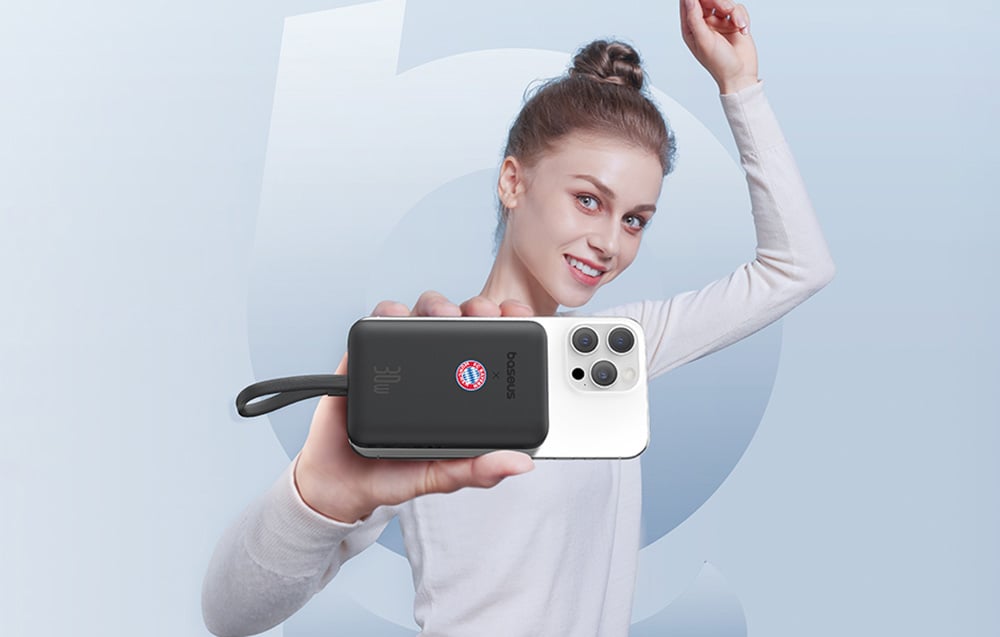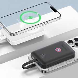 Baseus Mini 10000mAh 30W mágneses powerbank (fekete) Bayern kiadás. Gyorsan és biztonságosan töltse fel eszközeit. A Baseus mini powerbank USB-C porttal van ellátva és lehetővé teszi a vezeték nélküli töltést. Kapacitása eléri a 10 000 mAh-t. Beépített kijelzővel is rendelkezik, amely lehetővé teszi, hogy bármikor ellenőrizze az akkumulátor kapacitását. Támogatja az olyan gyors töltési protokollokat, mint például a PD 30W. További bónuszként egy stílusos Bayern München-jelvényt is tartalmaz, amely egyedi színt kölcsönöz a készüléknek.