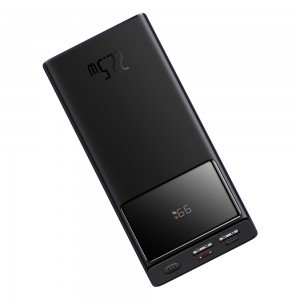 Gyártó: Baseus Modell: PPCX110201 Szín: fekete Akkumulátor kapacitás: 10000mAh / 38.5Wh USB-C port: 30W (max.) Vezeték nélküli töltő kimeneti teljesítménye: 15W (max.) Teljes kimeneti áram: 5V=3A Súly: 210 g