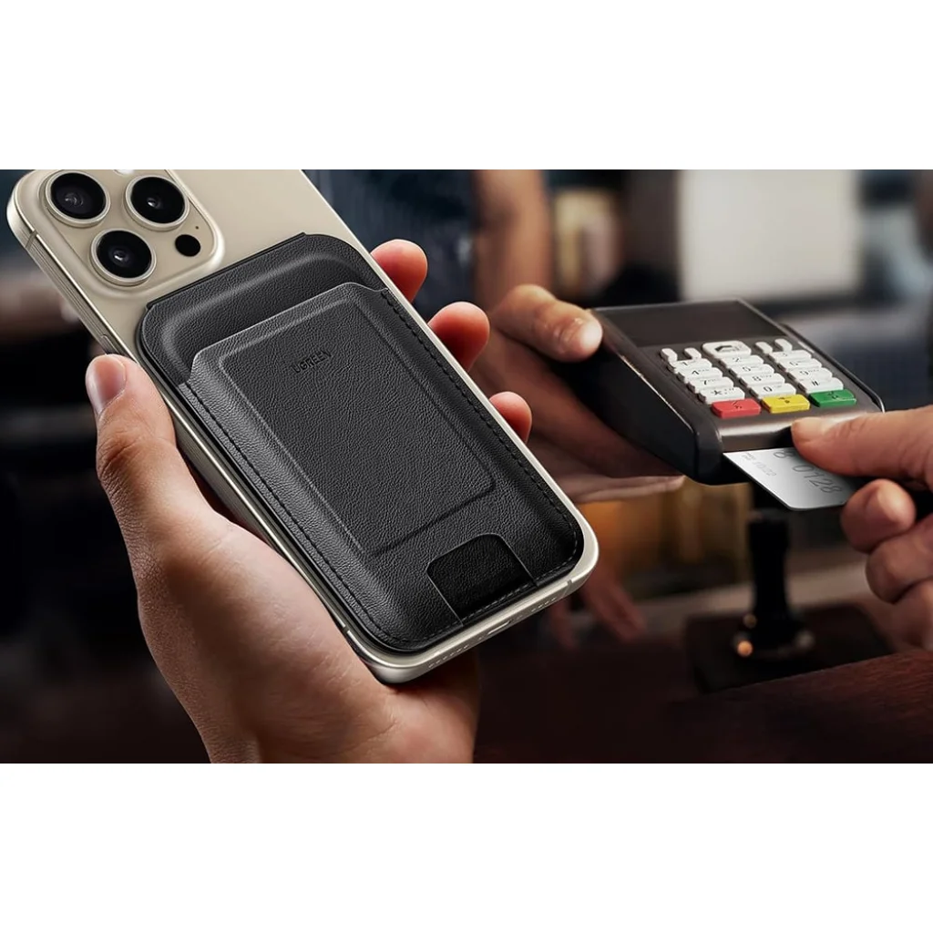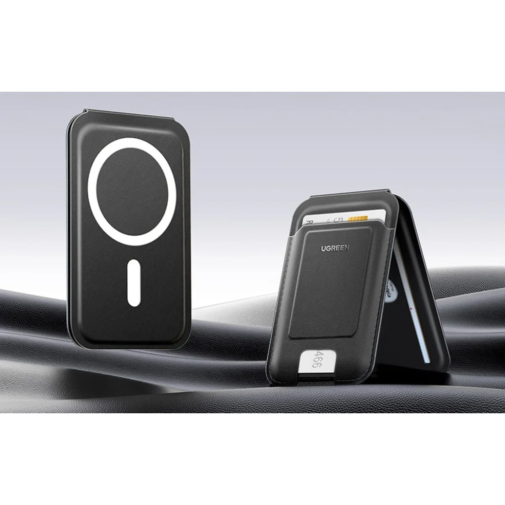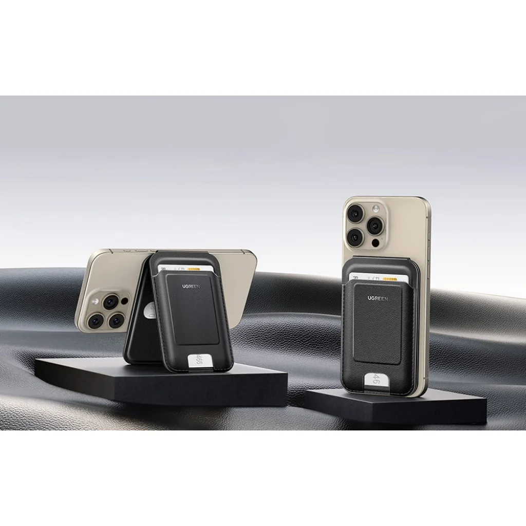 A Ugreen LP836 mágneses pénztárca nemcsak a kártyáid tárolására szolgál, hanem állványként is funkcionál az iPhone-od számára. Az elegáns fekete öko-bőrből készült termék kényelmet és biztonságot nyújt, és elegáns kiegészítője személyes dolgaidnak.