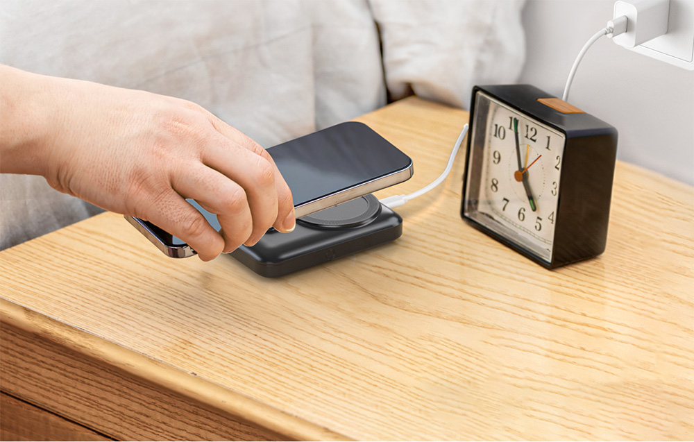 A Choetech B743 mágneses powerbank 2 az 1-ben töltési funkciót kínál – egyszerre tölti a csatlakoztatott eszközt és önmagát, így nincs szükség további kábelekre. A vezeték nélküli töltéssel megszabadulhatsz a kusza kábelektől, és az összecsukható mágneses kialakítás biztonságosan és stabilan helyezhető el az asztalodon vagy az éjjeliszekrényeden. Ideális, ha médiafogyasztásra, videók nézésére vagy videohívásokra van szükség töltés közben.