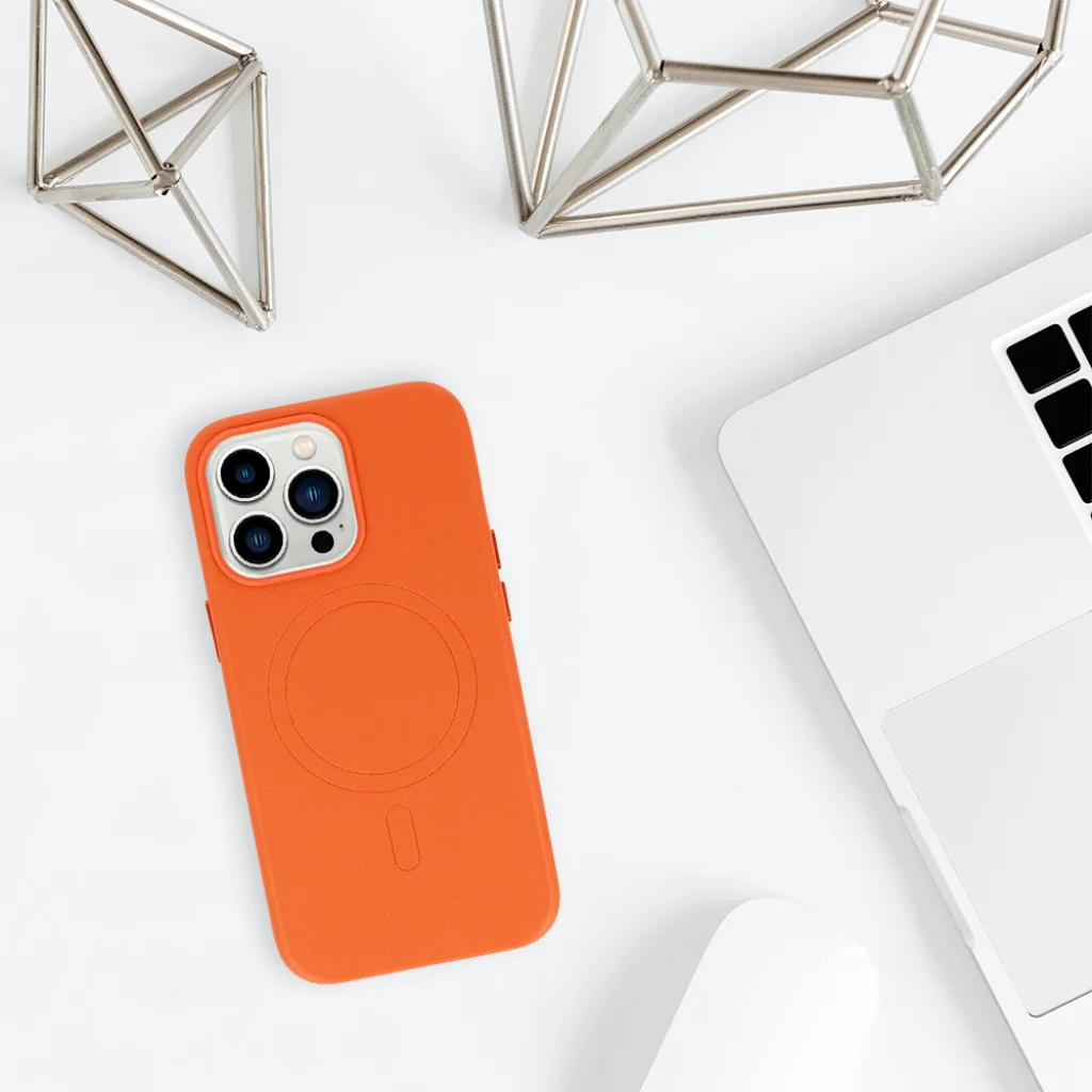 MagSafe bőrtok iPhone 15 Plus narancssárga