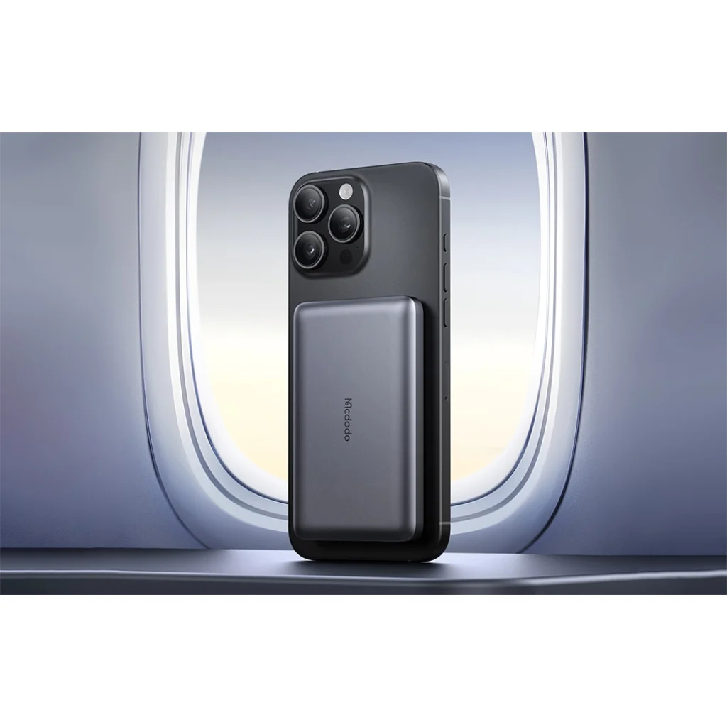 A McDodo MC-4651-et úgy tervezték, hogy tökéletesen csatlakoztatható legyen az iPhone 16 készülékhez - nem akadályozza a kamerát, és nem áll túl a készülék szélein. A speciális kialakításnak köszönhetően a rögzítés biztonságos és stabil, ami növeli a mindennapi használat kényelmét. A hordozható töltő támogatja az iPhone Akkumulátor Widget funkciót is, amely lehetővé teszi, hogy az iPhone képernyőjéről könnyedén nyomon követhesse a telefon és maga a készülék töltöttségi szintjét is. Az intuitív energiagazdálkodást egy beépített gomb segíti - egy kattintással aktiválható a vezeték nélküli töltés, dupla kattintással pedig kikapcsolható. Három színű LED jelzi a töltés állapotát: fehér (töltési szint), kék (vezeték nélküli töltés) és zöld (gyors bemeneti töltés).