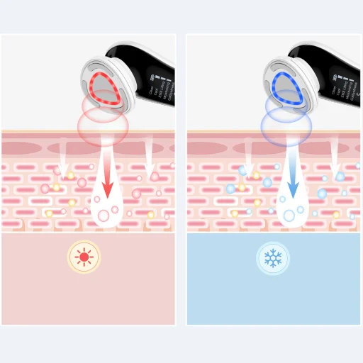 EMS a látható bőrfeszesítésért Az EMS mikroáram technológia stimulálja az arcizmokat, javítva a bőrtónust. LED fény a bőr szükségleteinek megfelelően A vörös fény támogatja a kollagén termelést és javítja a rugalmasságot, míg a kék fény segíti a bőrhibák elleni küzdelmet és szabályozza a faggyútermelést. Meleg és hideg a teljeskörű ápolásért A meleg mód kinyitja a pórusokat és előkészíti a bőrt tisztításra, míg a hideg mód segít a pórusok zárásában és a frissítő hatás fenntartásában. Jobb kozmetikum felszívódás Az iontoforézis technológia támogatja a hatóanyagok bőr mélyére történő szállítását, növelve az ápolás hatékonyságát. Multifunkcionális készülék a napi ápoláshoz Több technológia ötvözése egy készülékben lehetővé teszi, hogy tisztítsd, hidratáld és feszesítsd bőrödet anélkül, hogy több készüléket kellene használni.