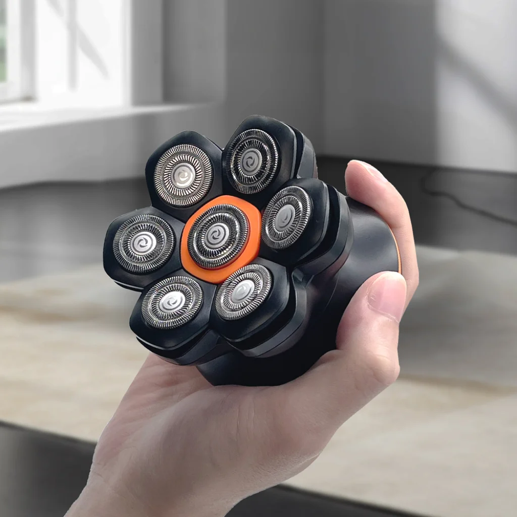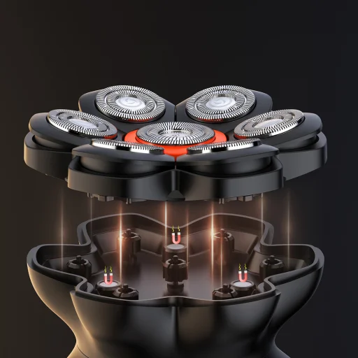 A 7-fejes mozgó rendszer a kontúrokhoz alkalmazkodik A rugalmas fejek jobban tapadnak a bőrhöz, megkönnyítve a fej és az arc alapos borotválását. A mágneses fej gyorsítja a tisztítást Az eltávolítható vágóegység egyszerűen levehető, elöblíthető és újra rögzíthető, időt spórolva minden használat után. A vízálló ház jól működik nedves és száraz körülmények között is Az IPX6 védelmi szint lehetővé teszi a borotva használatát nedves környezetben és egyszerűen tisztítható folyó víz alatt. Két sebességmód nagyobb irányítást biztosít Az eszköz két működési szintet kínál, megkönnyítve a borotválkozási sebesség beállítását a haj sűrűségéhez és hosszához. LED kijelző és USB-C töltés extra kényelmet nyújt A kijelző valós időben mutatja az akkumulátor állapotát, az USB-C töltés pedig megkönnyíti az otthoni vagy útközbeni feltöltést.