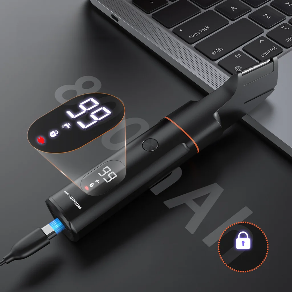 A MAXGROOM LK-881 trimmer egy kényelmes megoldás a teljes test és az arc ápolására. A dedikált fejek lehetővé teszik a különböző területek precíz ápolását, az arcszőrzettől a nehezen elérhető helyekig. A lekerekített pengék fokozzák a használat kényelmét és biztonságát, még érzékeny bőrön is. Az IPX6 vízálló kialakítás lehetővé teszi a zuhanyzás közbeni használatot és a gyors tisztítást. A digitális kijelző és a hosszú működési idő mindennapi teljes ellenőrzést és kényelmet biztosít. Ez egy praktikus eszköz a mindennapos alapos ápolásra bármilyen környezetben.