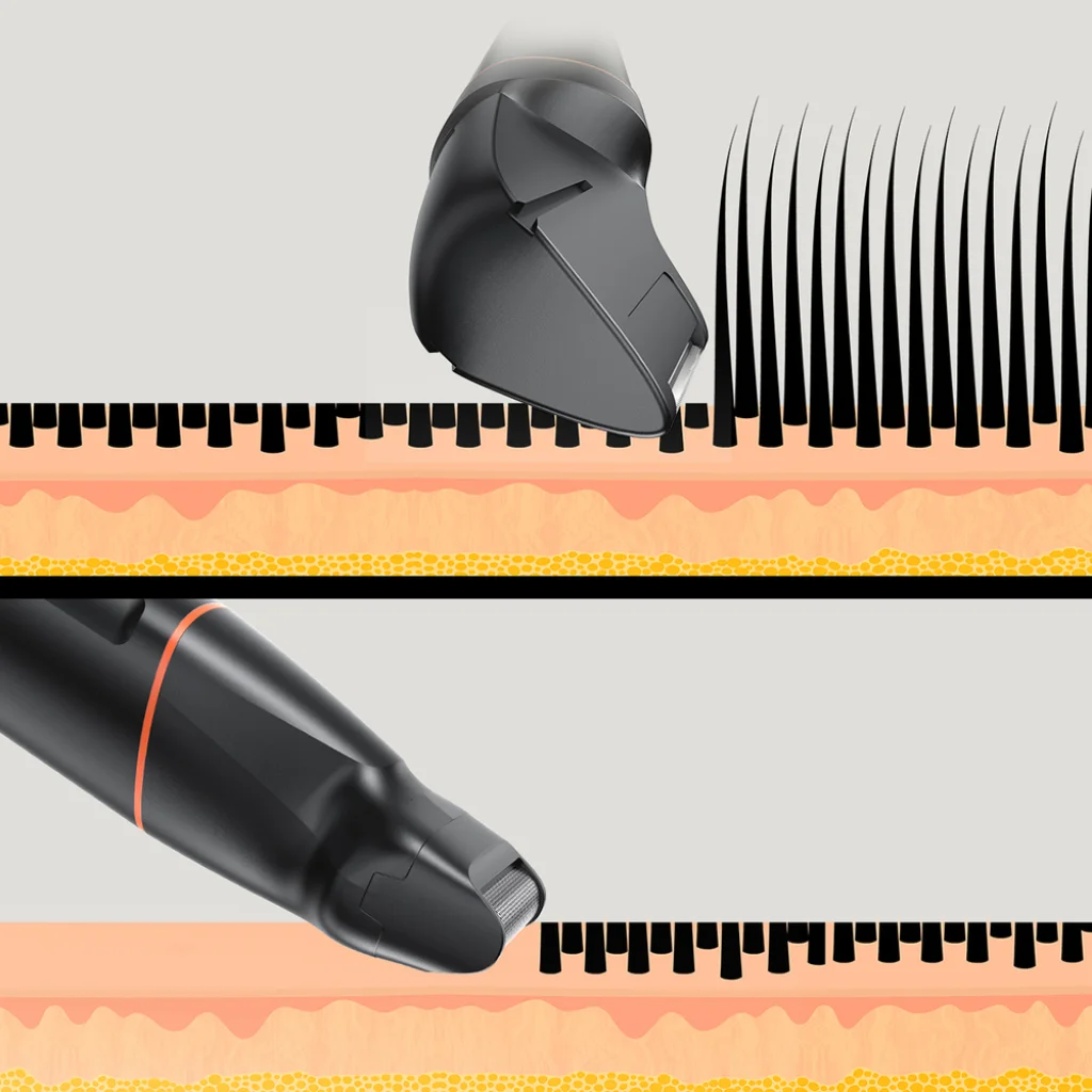 Vízálló kialakítás jól működik a zuhany alatt: A trimmer használható szárazon vagy nedvesen, és használat után egyszerűen öblítse le a fejeket folyó víz alatt, hogy higiénikusan tartsa őket.