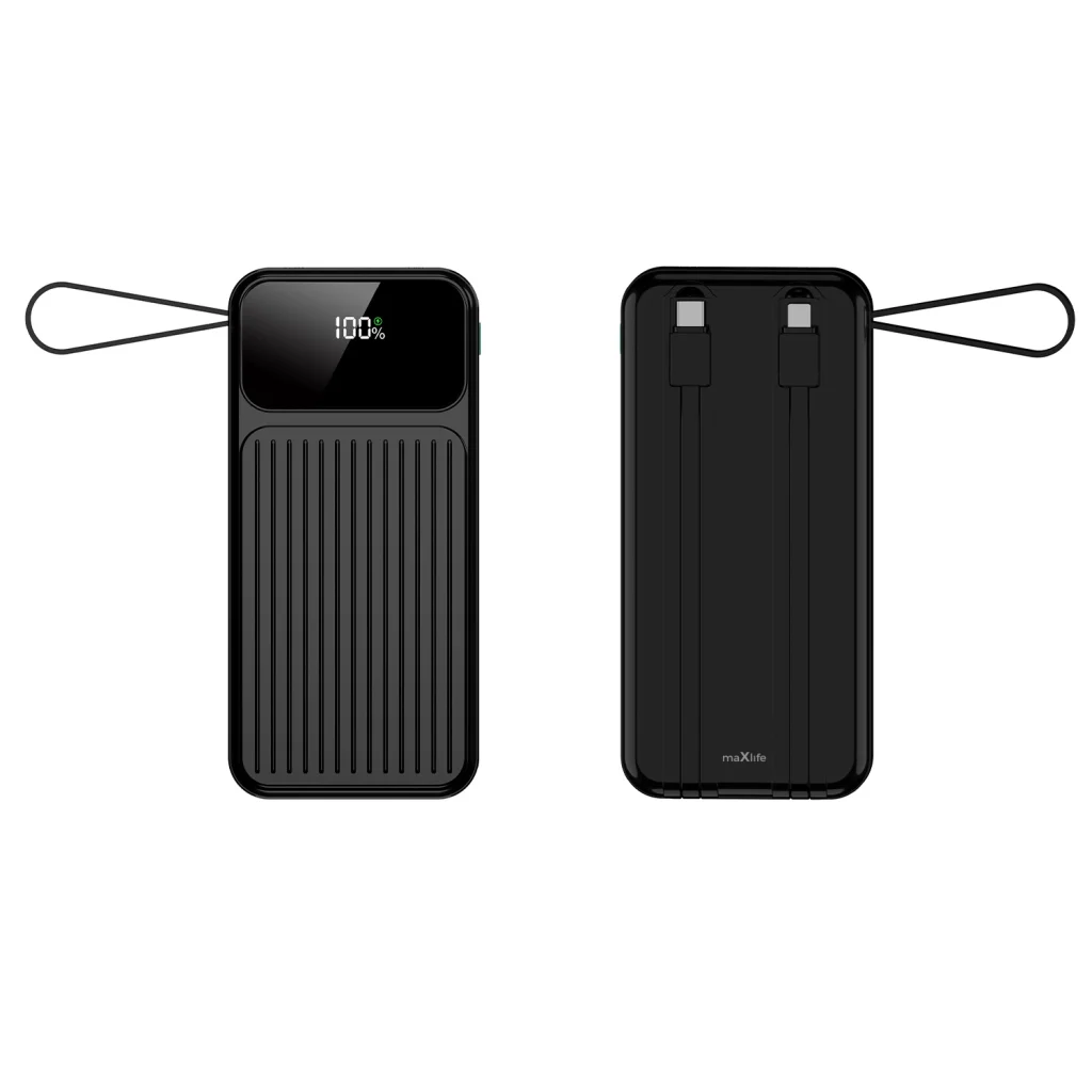 A Maxlife MXPB-06 10 000 mAh kapacitással gyors töltést tesz lehetővé az okostelefonod vagy más eszközöd számára. A MXPB-06 power bank beépített USB-C és Lightning kábeleket tartalmaz, amelyek esztétikusan beépítettek az eszköz házába. A kábelek könnyen kihúzhatók és újra rögzíthetők. Ez az okos megoldás megszünteti a plusz tartozékok cipelésének szükségességét, kényelmet és rendet biztosítva a használat során.