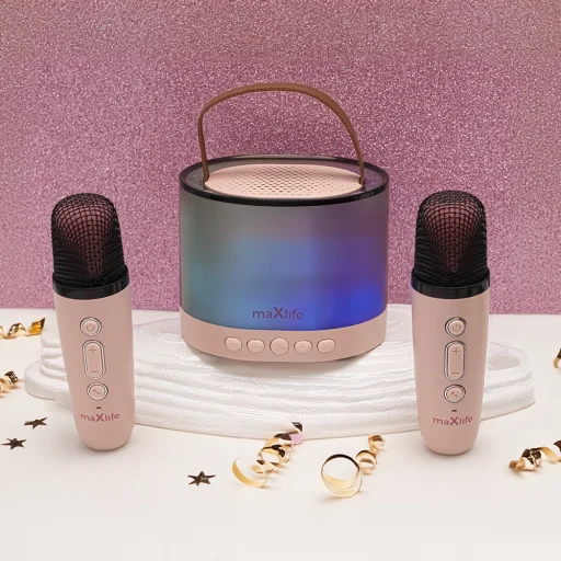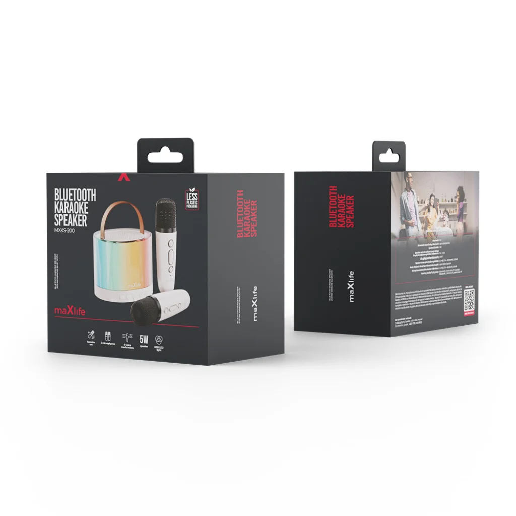 A Bluetooth Karaoke Szett MXKS-200 Maxlife tökéletes megoldás bármilyen bulira, garantálva a nagy szórakozást és felejthetetlen zenei élményeket. Funkcionalitásának és mobilitásának köszönhetően a szett megbízható társ bármilyen eseményen. Az 5 W-os hangszóró mély és tiszta hangzást biztosít, míg az 1500 mAh lítium-polimer akkumulátor lehetővé teszi a folyamatos zenelejátszást körülbelül 5 órán keresztül.