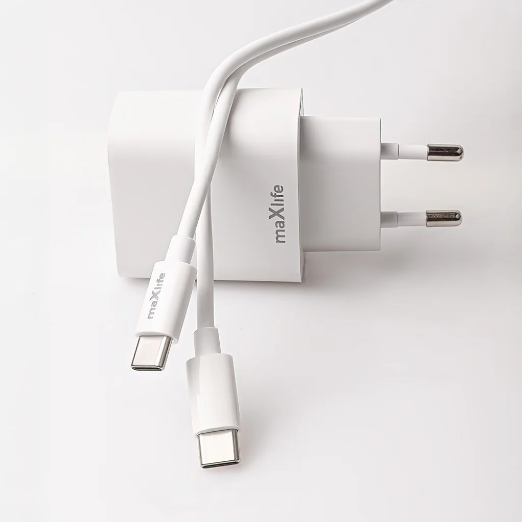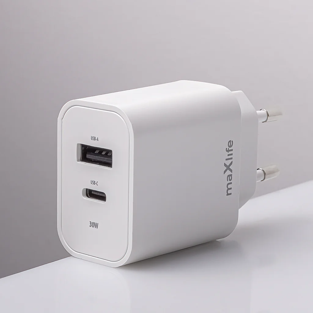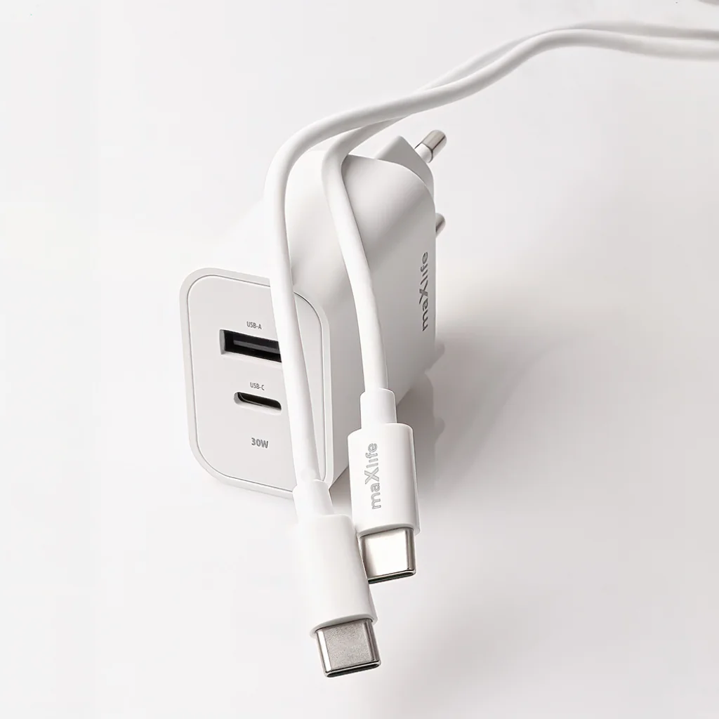 Maxlife MXTC-06-30AC PD QC töltő 1x USB-C 1x USB 30W fehér + USB-C - USB-C kábel 60W