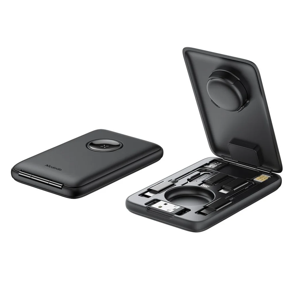 A Mcdodo 8in1 kiegészítő rendezővel búcsút mondhatsz a kusza kábeleknek és a hiányzó töltőknek. Ez a fekete, elegáns megoldás minden úton lévő felhasználó számára kötelező darab!