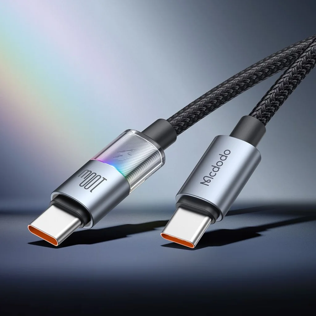A Mcdodo CA-8200 adatkábel a funkcionalitást és az esztétikát ötvözi. Az egyik USB-C csatlakozó átlátszó PC borítása lehetővé teszi, hogy megcsodálhassa a belső áramköri elemeket és a vibráló 7 színű LED fényeket, melyek szekvenciálisan változnak töltés közben. Ez nemcsak informatív a töltés állapotát illetően, hanem rendkívül látványos is, egyedi hangulatot adva a töltési folyamatnak, legyen szó akár játékról, akár munkáról.