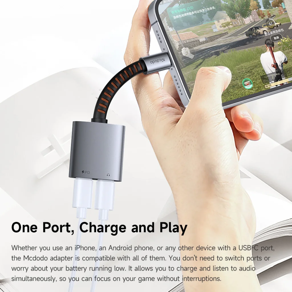 Ez a sokoldalú adapter rendkívül széles körű kompatibilitással rendelkezik. Legyen szó iPhone-ról (USB-C porttal), Android telefonról vagy bármilyen más USB-C eszköztől, a Mcdodo adapter tökéletesen működik mindegyikkel. Nem kell aggódnod az akkumulátor lemerülése miatt játék vagy zenehallgatás közben.
