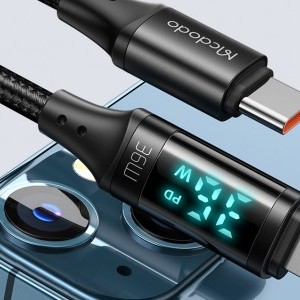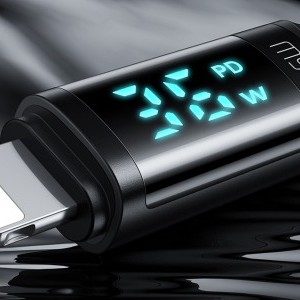 Kövesse nyomon a töltési folyamatot A fokozott kényelem érdekében a kábel egy görbített LED kijelzővel van felszerelve, amely mutatja a töltési teljesítményt, és felismeri, hogy a csatlakoztatott eszköz támogatja-e a PD gyorstöltési protokollt. Ennek eredményeként mindig naprakész lehet!