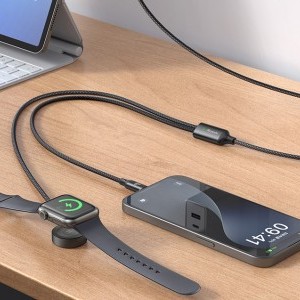 A Mcdodo CA-2200 egy innovatív 2 az 1-ben kábel, amely a gyors töltést egyesíti USB-C porton keresztül az Apple Watch vezeték nélküli töltőjével. Ezzel a megoldással egyszerre töltheted mobilkészülékeidet és órádat, így ideális választás azoknak, akik a funkcionalitást és a kényelmet értékelik.