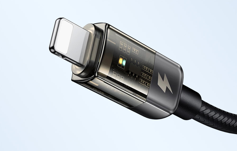 A kábel intelligens LED-es jelzőfényt tartalmaz, amely tájékoztat a készülék töltési állapotáról. A narancssárga fény a gyors töltést, a kék pedig a tartós töltést jelzi. A beépített jelzőfények sötétben is segítenek megtalálni a csatlakoztatott eszközt.