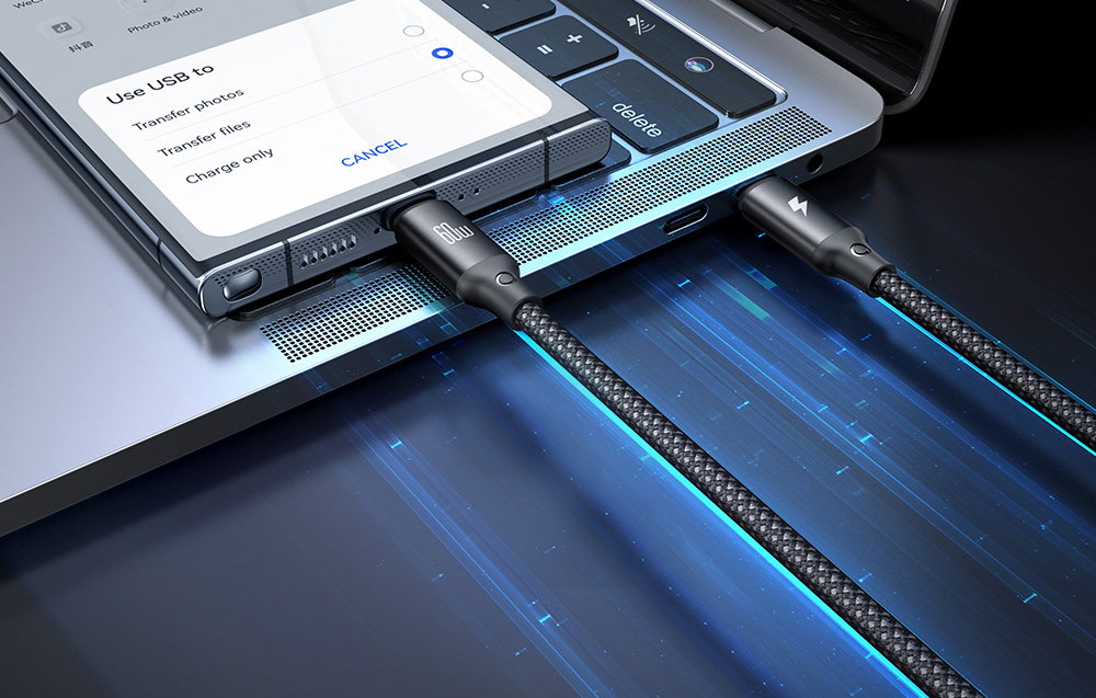 A kábel támogatja az akár 60W-os gyors töltést, lehetővé téve olyan eszközök azonnali töltését, mint a laptopok, okostelefonok és táblagépek. Ez különösen hasznos utazás közben vagy egy sűrű munkanapon.