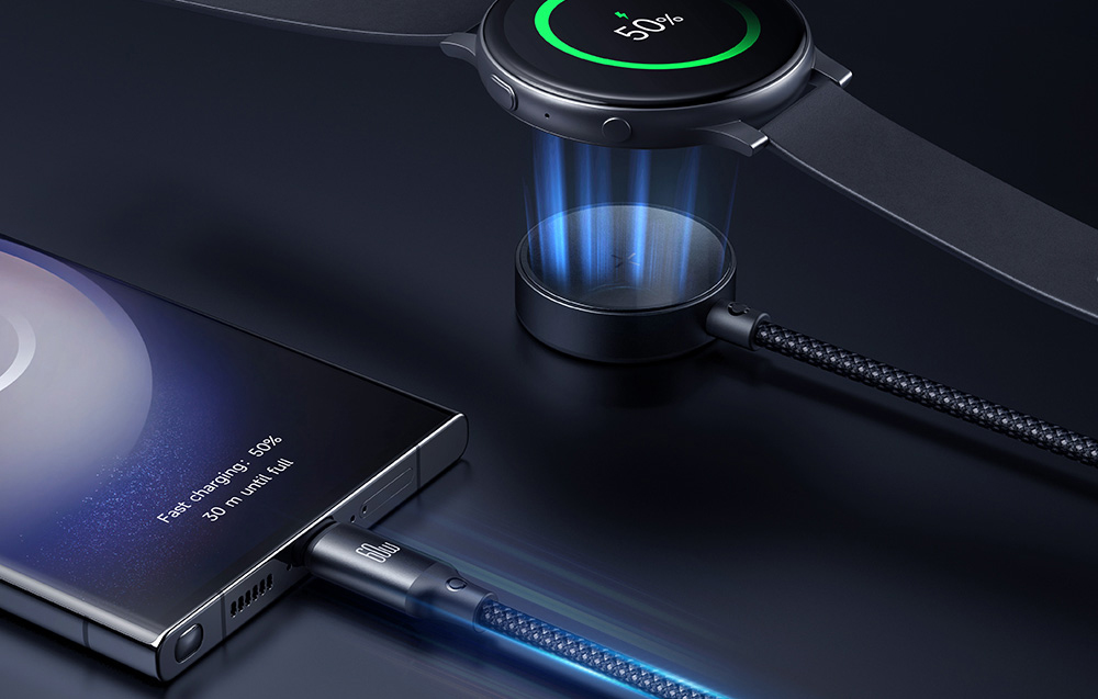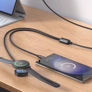 A Mcdodo CA-4210 egy innovatív 2 az 1-ben kábel, amely gyors vezetékes töltést kínál USB-C-n keresztül és egy dedikált töltőt biztosít a Samsung Watch számára. Akár 60W teljesítményt nyújt 1,2 méter hosszúsággal, maximális kényelmet és sebességet biztosítva mind az okostelefonok, mind az okosórák töltéséhez.