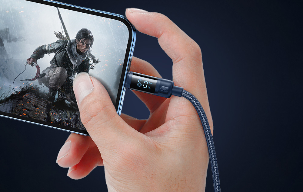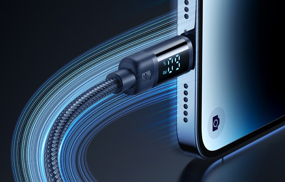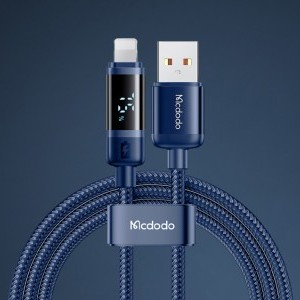 A Mcdodo CA-5001 kábel egyedülálló jellemzője a beépített digitális kijelző, amely jelzi az iPhone aktuális töltési szintjét. Ez a modern megoldás lehetővé teszi az akkumulátor állapotának valós idejű nyomon követését, növelve a kényelmet és az ellenőrzést az egész folyamat során.
