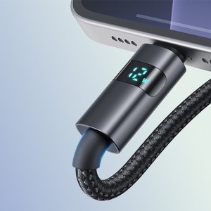 A beépített LED-kijelző praktikus kiegészítő, amely jelzi az aktuális töltési teljesítményszintet. Ezáltal a felhasználó teljes mértékben ellenőrzése alá vonja az áramellátás folyamatát, így kényelmesebbé teszi a használatot. A kábel automatikusan a csatlakoztatott eszközhöz igazítja a feszültségparamétereket, így biztosítva az akkumulátor optimális védelmét.