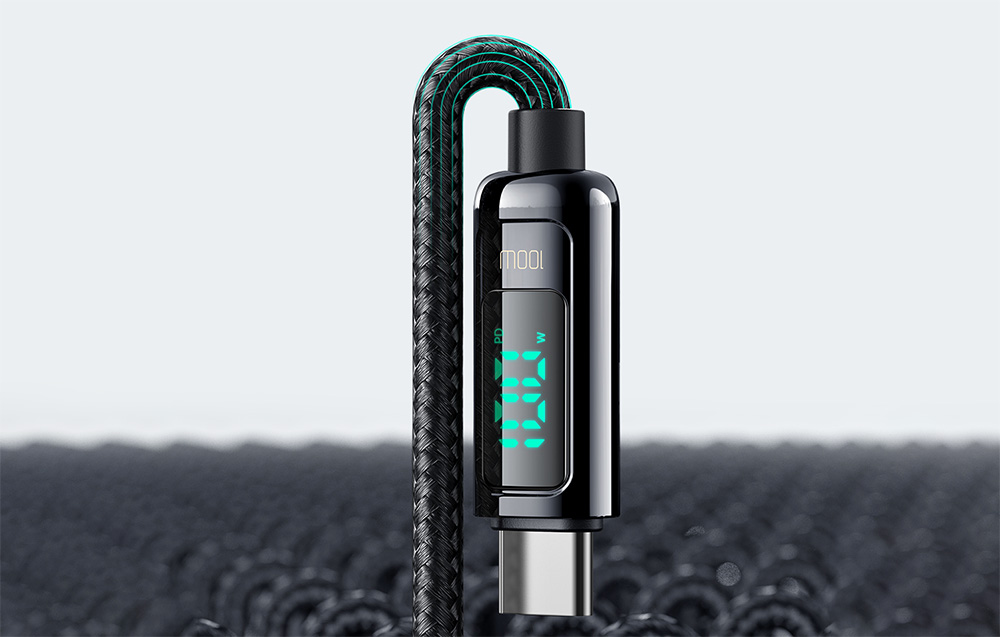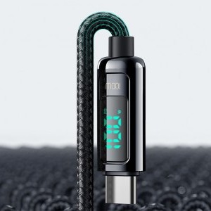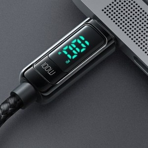 Az E-marker chipnek köszönhetően a kábel automatikusan beállítja az áramerősséget a csatlakoztatott eszközhöz, garantálva a gyors és biztonságos töltést. Ezen felül a beépített kijelző valós időben jelzi a töltési teljesítményt, lehetővé téve a töltési folyamat valós idejű nyomon követését.