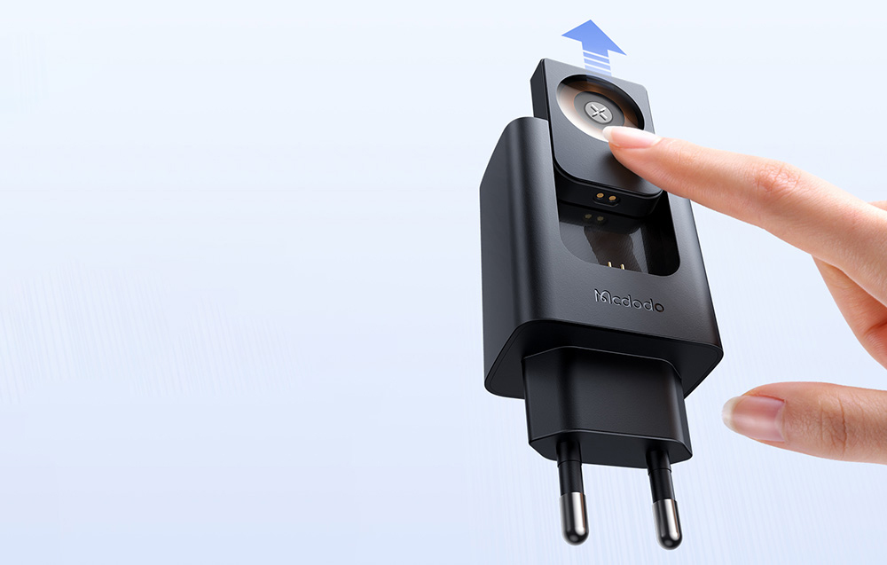 A McDodo CH-3700 töltő robusztus mágneses tartójával tűnik ki, amely biztosítja a biztonságos és stabil rögzítést a konnektorban, így bármilyen körülmények között kényelmesen használható. Az innovatív kialakításának köszönhetően a töltő gyors töltési funkcióval is rendelkezik az Apple Watch számára - csak finoman húzza ki a modult, hogy önálló töltőként használhassa az órához.
