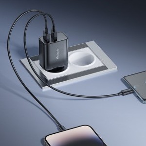 A Mcdodo CH-5072 töltőhöz egy 1 m hosszú USB-A - USB-C kábel is tartozik, amely tartós TPE anyagból készült, és akár 3A áramot is biztosít. Ez nemcsak tartóssá teszi a kábelt, hanem gyors és stabil töltést is biztosít.