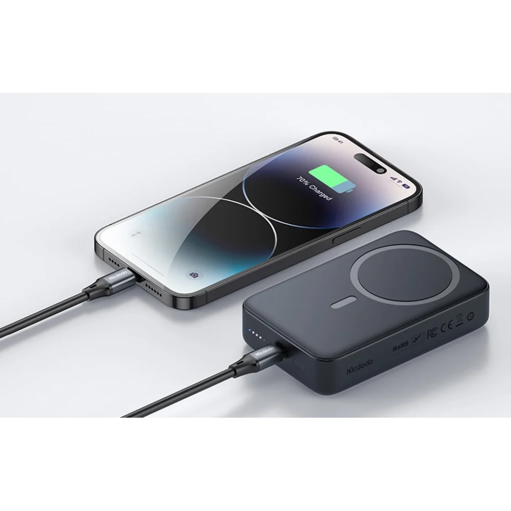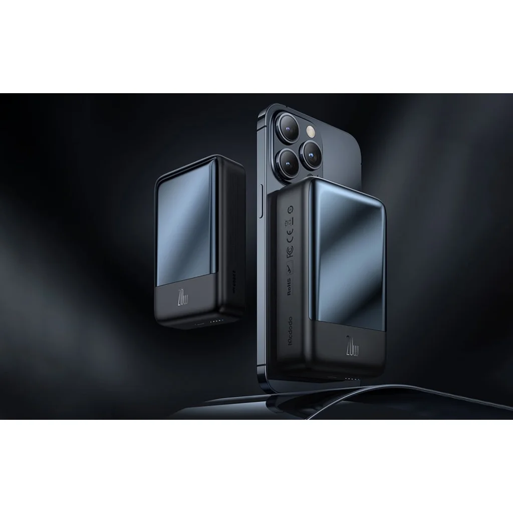 A Mcdodo MC-5021 mágneses powerbank a modern dizájn és a magas teljesítmény tökéletes kombinációja. 20000mAh kapacitása lehetővé teszi, hogy bármilyen helyzetben feltöltse készülékeit, kompakt mérete pedig otthoni és utazási használatra egyaránt tökéletesen alkalmassá teszi. A termék támogatja a vezetékes és vezeték nélküli töltést, és kompatibilis számos okostelefon modellel. Nem szükséges kivenni a telefonját a tokból a használatához! A csomagban található egy 0.2 méteres USB-C - USB-C kábel is.