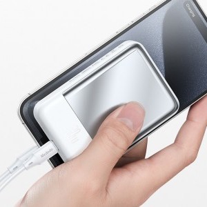 Ez a powerbank akár 15 wattos vezeték nélküli és akár 30 wattos gyors USB-C vezetékes töltést is kínál. Ez azt jelenti, hogy kábelek nélküli is töltheti telefonját, és szükség esetén gyorsan feltöltheti az akkumulátort kábellel.