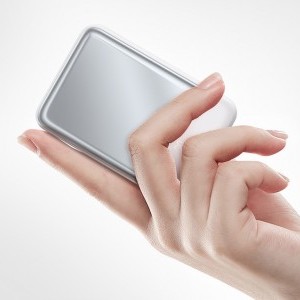 Egy LED jelzőkészlet tájékoztat az akkumulátor szintjéről és az aktuális töltési módról - kék a vezeték nélküli töltéshez és narancs a vezetékes töltéshez. Ezenkívül a powerbank háza ujjlenyomat-ellenálló, így hosszabb ideig megőrzi esztétikus megjelenését. Egy kis gomb az eszköz könnyű kezelését is lehetővé teszi.