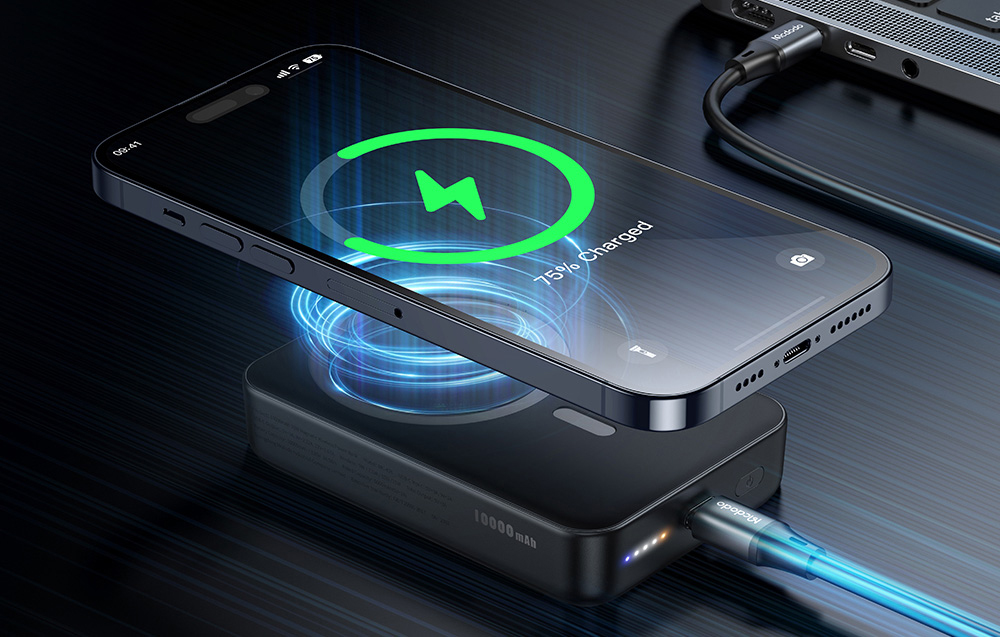 A 10,000mAh kapacitású powerbank kompakt kialakítást és funkcionalitást ötvöz, gyors és biztonságos töltést biztosítva mind vezetékes, mind vezeték nélküli módban. Mágneses rögzítése, masszív kialakítása és különböző okostelefon modellekkel való kompatibilitása révén kényelmet biztosít a mindennapi használat során. Emellett a hőmérséklet-figyelés és a túlmelegedés elleni védelem biztosítja a biztonságos működést bármilyen helyzetben.