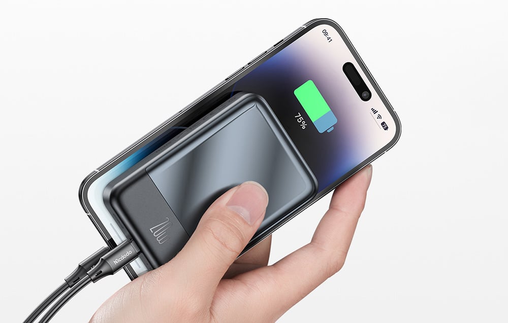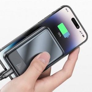 A powerbank 20W-os vezetékes töltést használ, amely akár 60%-ra töltheti az eszközt mindössze 30 perc alatt, ami ideális gyors feltöltést igénylő helyzetekben. Emellett akár 15 wattos vezeték nélküli töltést is kínál, amely gyors töltést biztosít kábelek nélkül.