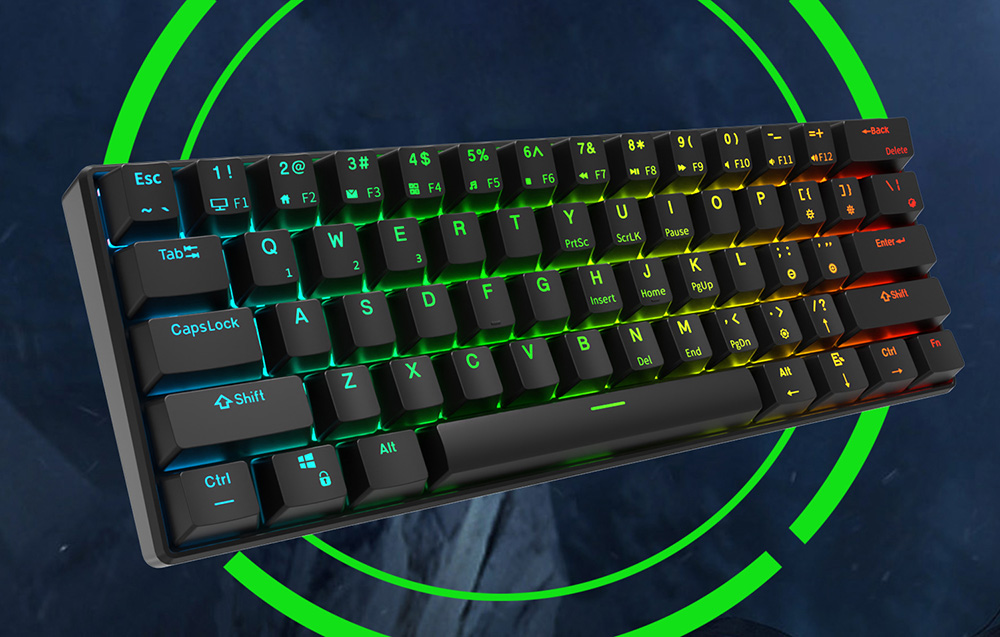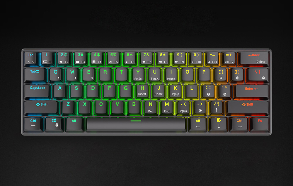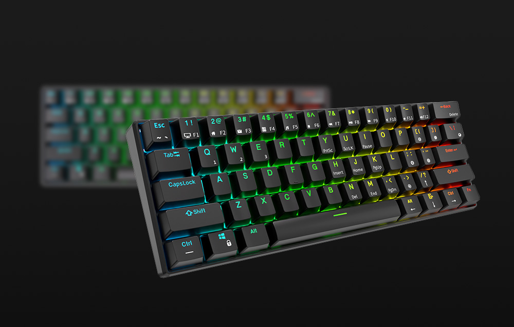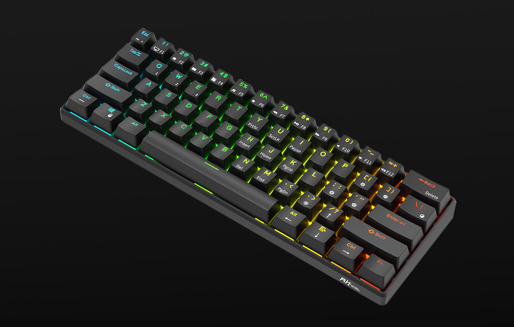A Royal Kludge RK61 billentyűzet tökéletesen illeszkedik a játék környezetedbe! Színes RGB háttérvilágítással rendelkezik 14 különböző világítási móddal. Ez lehetővé teszi, hogy az ízlésed szerint testreszabhasd, egyedi világítási hatásokat létrehozva munka vagy játék közben. Kompakt kialakítása révén bármilyen asztalon elfér, több helyet hagyva a projektjeid számára.