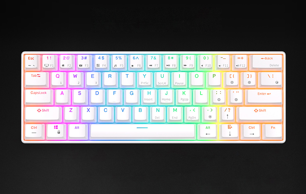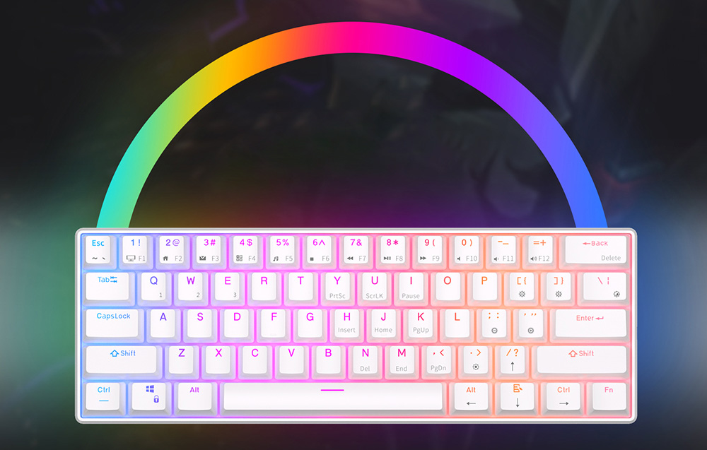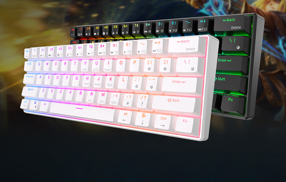 A Royal Kludge RK61 billentyűzet tökéletesen illeszkedik a játékhoz! Színes RGB háttérvilágítással rendelkezik 14 különböző világítási móddal. Ez lehetővé teszi, hogy testre szabja a saját ízlése szerint, egyedi világítási effektusokat létrehozva munka vagy játék közben. Kompakt kialakítása azt jelenti, hogy bármely asztalra ráfér, több helyet hagyva a projekteknek.