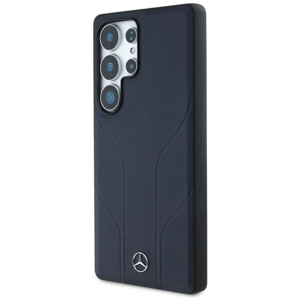 Mercedes Bőrből Készült Dombornyomott Vonalak MagSafe Tok Samsung Galaxy S25 Ultra - Kék Tok