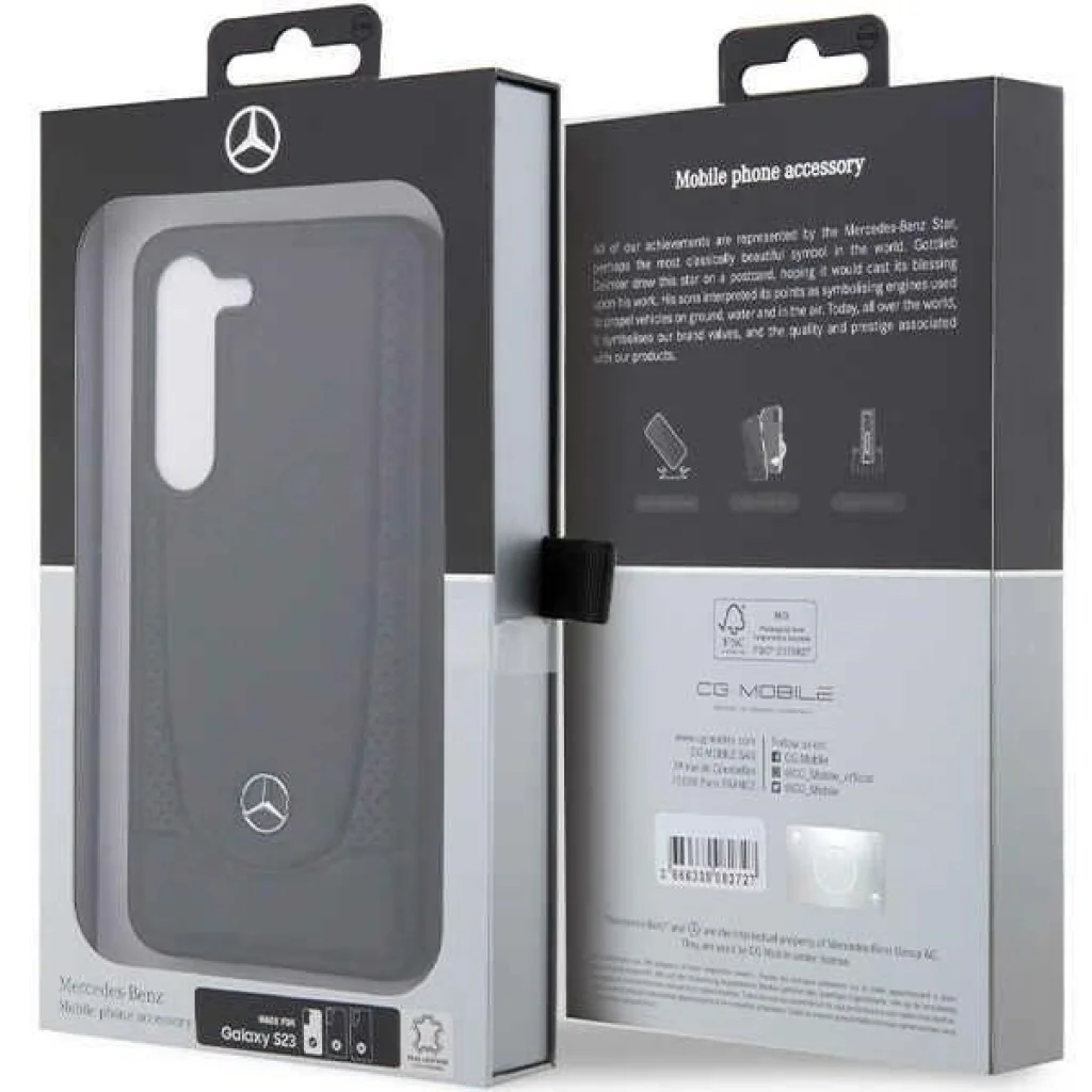Minden részlet gondos kidolgozása jellemzi a Mercedes termékeket. A tok nagy gondossággal készült, kiváló minőségű ökobőrből, mely kiemelkedik kompromisszummentes kidolgozásával. A telefon jobb védelme érdekében a tok oldalsó élei TPU-val vannak megerősítve. A tok megfogásával a készülék biztosan ül a kezedben, szinte tökéletesen illeszkedik a készülékhez, ezáltal növelve biztonságát és ütésekkel szembeni ellenállását, továbbá tompítva az esetleges ütődéseket. A tok enyhén megemelt élekkel rendelkezik, így a képernyő és a kamera lencséje védve van a karcolások és törések ellen. A tok tökéletesen illeszkedik, és minden gombborítást és portkivágást tartalmaz.