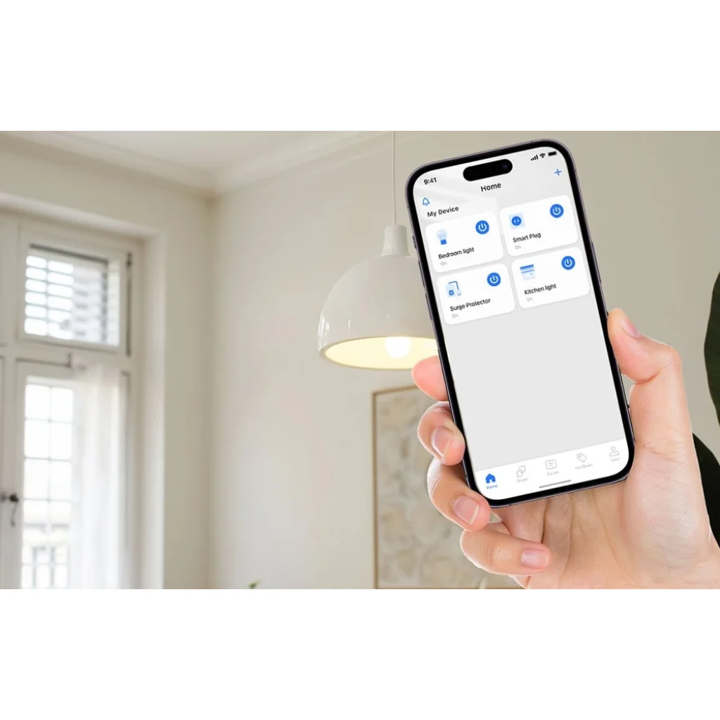 Irányítsa csatlakoztatott eszközeit bárhonnan a világból – kényelmesen a Meross alkalmazással vagy egyszerű hangutasításokkal. Az Apple HomeKit, Google Home és Amazon Alexa platformokkal való zökkenőmentes integrációnak köszönhetően be- vagy kikapcsolhatja készülékét anélkül, hogy fel kellene állnia a kanapéról. A kapcsoló emellett támogatja a helyi forgatókönyveket és automatizálásokat is, amelyek az internettől függetlenül működnek, így garantálva a rendszer stabilitását és megbízhatóságát, még hálózati kimaradás esetén is. A Meross alkalmazás intuitív felületén könnyedén kezelhet több eszközt is, legyen szó hálószobai lámpáról, konyhai világításról vagy akár egy okos dugaljról, ahogy azt az illusztrált képek is bemutatják.