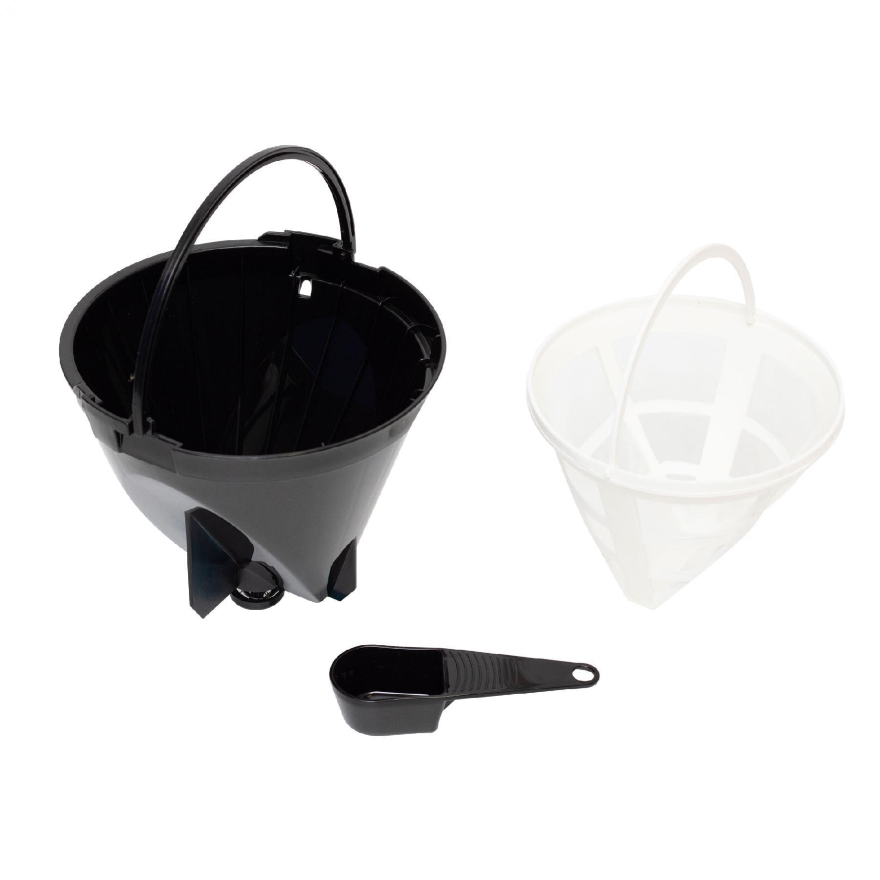 A kávéfőző kivehető műanyag szűrővel rendelkezik, ami megkönnyíti a tisztítást és a karbantartást. A Pause 'n Serve funkció lehetővé teszi, hogy a kiöntő kivételekor automatikusan zárjon a szelep, így elkerülheti a kávé kifolyását. A készülék beépített vízmérővel rendelkezik, amely pontos feltöltést biztosít minden egyes alkalommal.