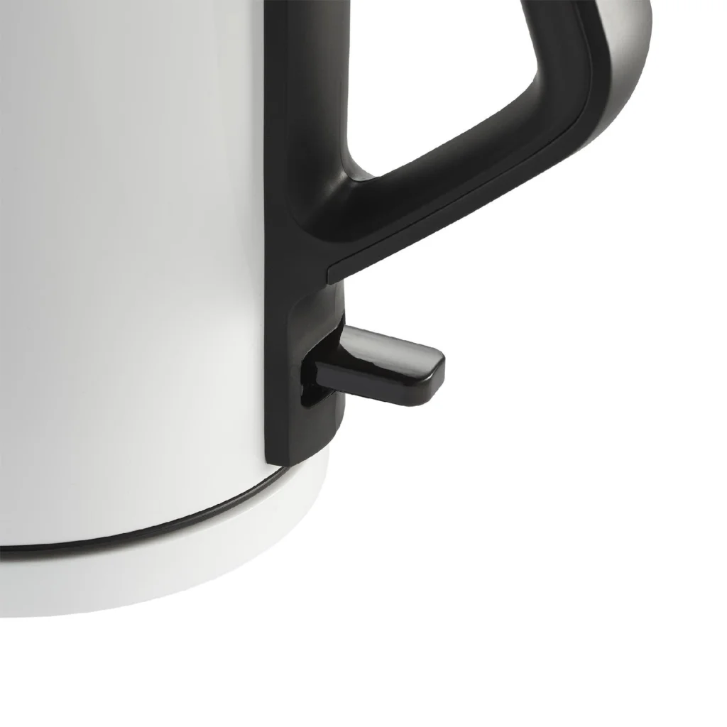 Ez az elegáns, fehér-fekete dizájnnal készült vízforraló nemcsak megjelenésével, hanem funkcióival is kiemelkedik a piacon. A 1,5 literes kapacitás ideális mennyiséget biztosít, amely gyorsan felforrósítható a 1850-2200 wattos teljesítmény révén. A készülék varrat nélküli, rozsdamentes acél belső felülettel rendelkezik, amely nemcsak higiénikus, de rendkívül könnyen tisztítható is. A duplafalú kialakítás nemcsak a biztonságot szolgálja, hanem a hőtartást is növeli, így a víz hosszabb ideig marad forró, minimalizálva az energiafogyasztást. A vízforraló fedelét egyetlen gombnyomással nyithatja, ami megkönnyíti a töltést és az öntést. A kompakt, letisztult formatervezésű készülék illeszkedik minden konyhai környezetbe, és használatával a forró italok készítése egyszerűbb, gyorsabb és biztonságosabb, mint valaha.