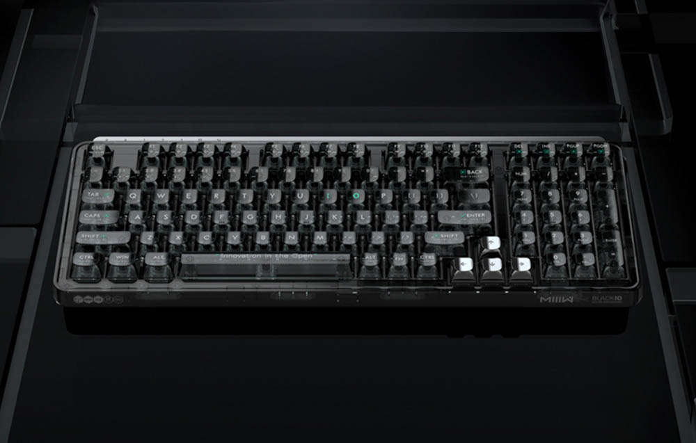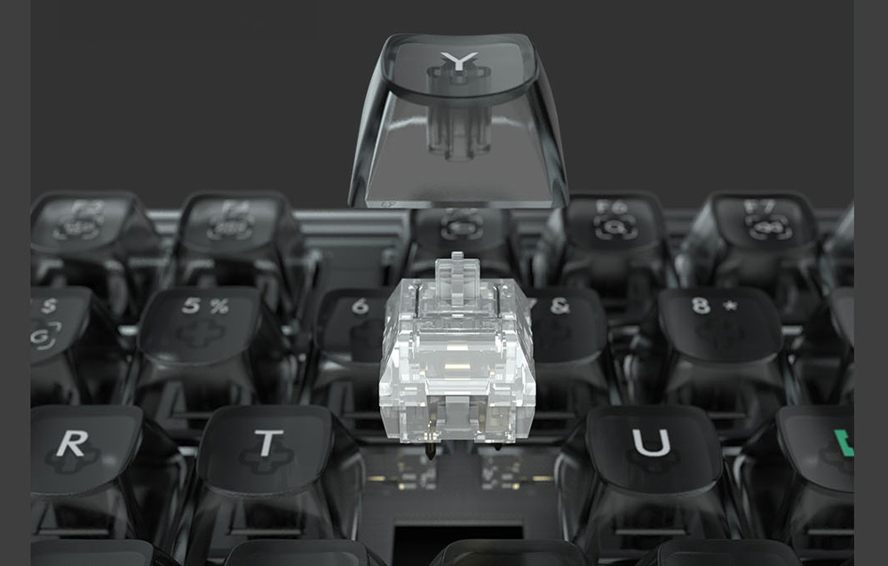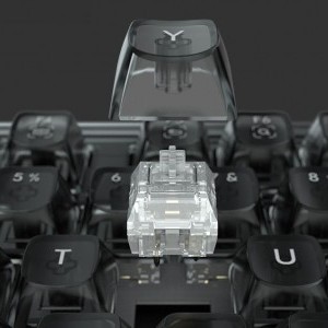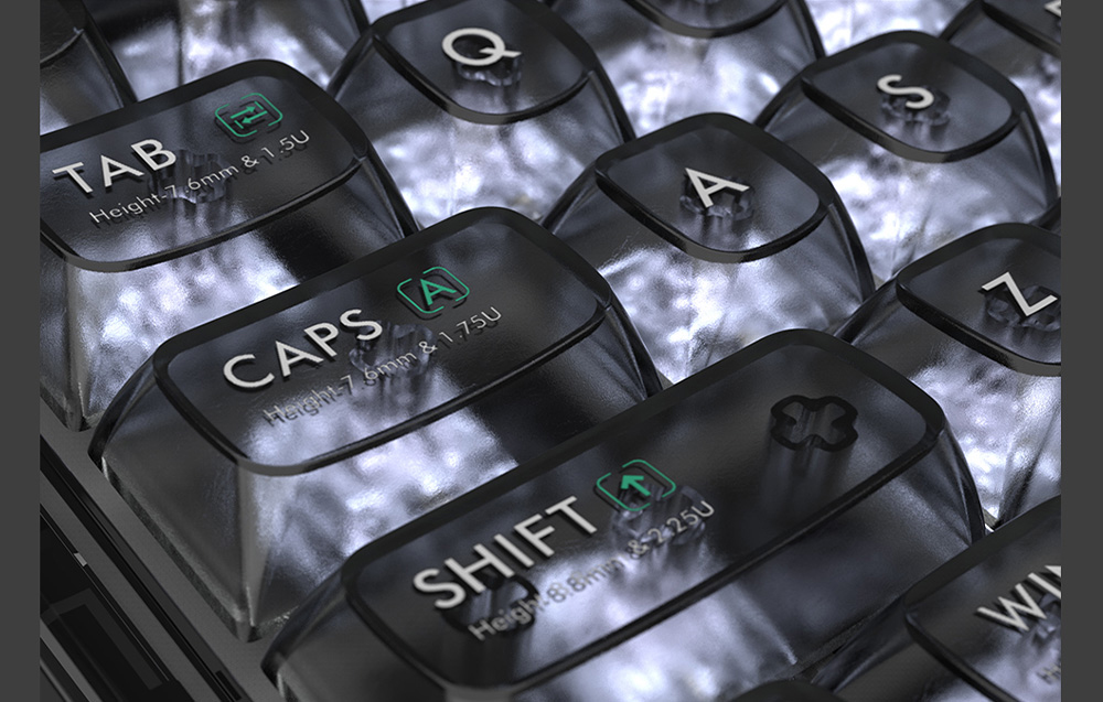 Lenyűgöző dizájn A BlackI098 MIIIW Mechanikus Billentyűzet nemcsak fejlett funkcionalitásával, hanem rendkívüli dizájnjával is kitűnik a többi közül. Átlátszó fekete obszidián-szerű kialakítása egyedi, futurisztikus karaktert kölcsönöz neki. A billentyűk lágy, csillogó fénye egyenesen a sci-fi filmek világát idézi, tökéletesen illeszkedve a modern belső terekhez és játék térhez. Az átlátszó PC anyag és az elektrolizált fém textúrájának kontrasztja hangsúlyozza a dizájn eleganciáját és szilárdságát.