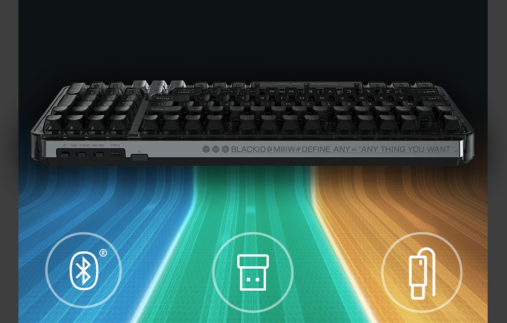 Személyre szabás és hosszú távú működés A BlackI098 MIIIW billentyűzet 48 bites RGB háttérvilágítást kínál, amely teljes mértékben testreszabható, hogy tökéletesen illeszkedjen stílusához és hangulatához. A cserélhető kapcsolók és billentyűsapok teljes személyre szabást tesznek lehetővé, és a 3 vagy 5 tűs mechanikus kapcsolókat támogató áramköri lap garantálja a magas minőségű teljesítményt. Az erőteljes 4,000 mAh lítium akkumulátornak köszönhetően a billentyűzet akár 200 órán keresztül is működhet egyetlen töltéssel. Ráadásul vezetékes módban töltés közben is használható, így kiküszöböli az állásidőt.