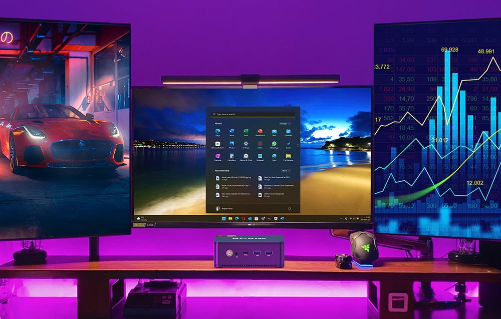 A kompakt GMKtec K6 támogatja a 4K@60Hz felbontással rendelkező három kijelző egyidejű megjelenítését, így megfelel a nagy munkafelületet igénylő profik igényeinek. A HDMI-n, DisplayPorton és USB-C-n keresztüli csatlakozás garantálja a legmagasabb képminőséget és a zökkenőmentes működést.