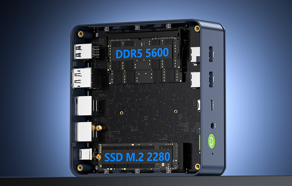 Ismerd meg a GMKtec K6 MINI-PC-t - egy erőteljes és kompakt számítógépet, amelyet a legmodernebb AMD Ryzen 7 7840HS processzor hajt. 8 maggal és 16 szállal, amelyek 3,8 GHz-es alapfrekvenciával (maximum 5,1 GHz) futnak, a mini-PC hihetetlen számítási teljesítményt nyújt, ideális fejlett feladatokhoz, irodai munkához, játékokhoz és multimédiás alkalmazásokhoz. Ehhez társul a 32GB DDR5 5600MHz RAM és egy gyors 1TB PCIe 4.0 SSD páratlan teljesítmény- és adattárolási sebesség biztosítására.